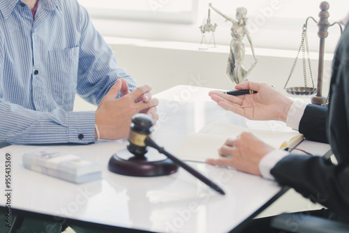 Lawyer accepts bribe in office, concept of corruption and bribery of lawyer with legal documents, scales of justice and hammer