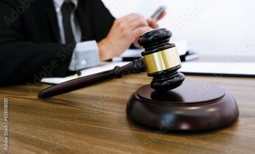 Lawyer Legal counsel presents to the client a signed contract with gavel and legal law. justice and lawyer Business partnership meeting concept.