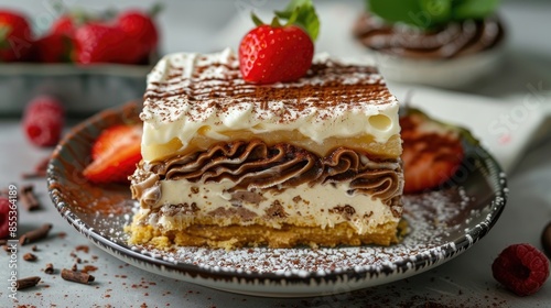 Layered Pudding with Marie Biscuits A Dessert Served on a Plate