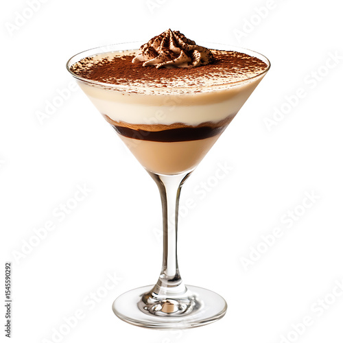 Layered Tiramisu Dessert in a Martini Glass with Whipped Cream and Cocoa Powder