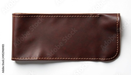 Leather flap, folded edge, clean lines, white backdrop, craft, smooth, shade