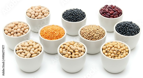 Legumes in cups on a white background Legu