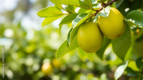 Lemon on the tree blurred of nature background, plant Sour taste fruit lime green vegetable