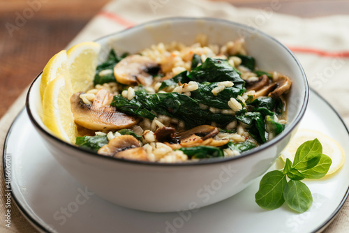 Lemony Spinach and Mushroom Risotto