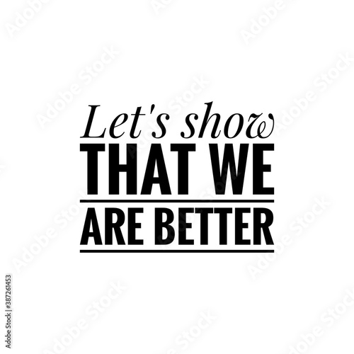 ''Let's show that we abre better'', superation message, motivational quote, motivation. Word Illustration to print on products/for design development