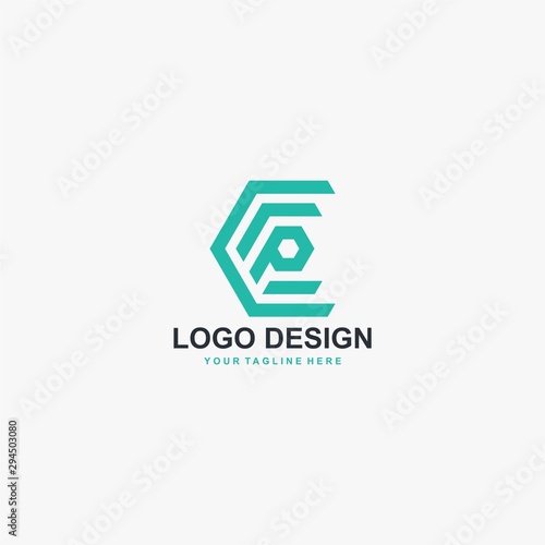 Letter C logo design vector. Labyrinth abstract symbol. Letter P outline vector icon.