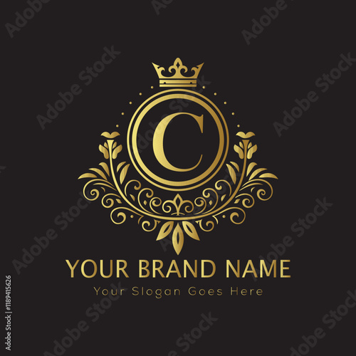 Letter Luxury brand logo design with a royal gold crown emblem and elegant typography