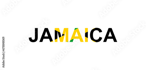 Letters Jamaica in the style of the country flag. Jamaica word in national flag style.