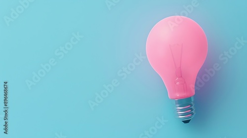 Levitating pink light bulb on blue background 3D photo Minimalistic still life Creative idea layout Concept art : Generative AI