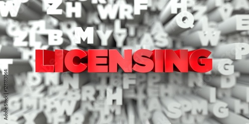LICENSING - Red text on typography background - 3D rendered royalty free stock image. This image can be used for an online website banner ad or a print postcard.