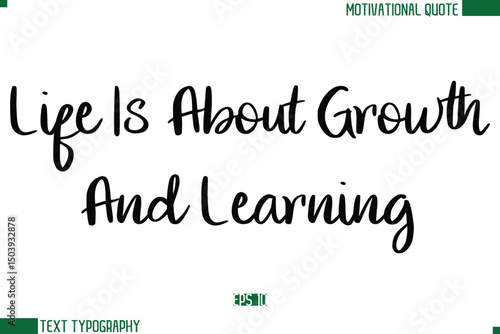 Life Is About Growth And Learning Stylish Cursive Calligraphic Text Trendy Life Quote Phrase
