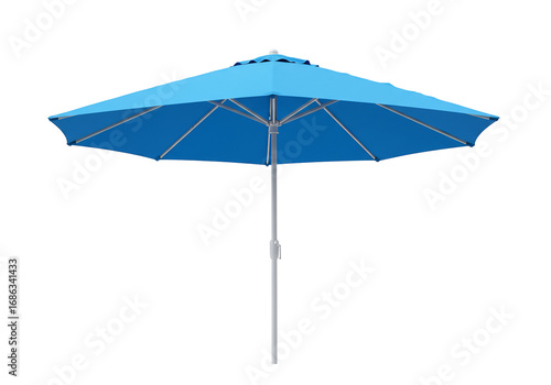 Light blue patio umbrella silver pole isolated transparent background