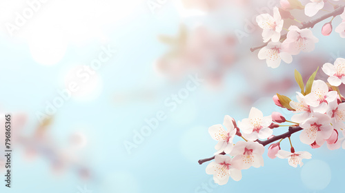 Light blue sky cherry blossom background