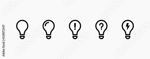 Light bulb line vector icon set. Light bulb with signs isolated on white background.