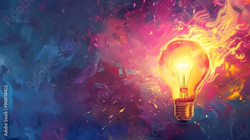 Light bulb vibrant and dynamic scene explosion of creativity and innovative thinking background,generative ai