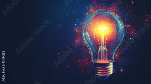 Light bulb with futuristic design, innovation and future growth, flat design illustration, copy space