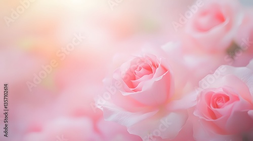 light pink roses in soft color and blur style for background. sweet color roses flowers in pastel tone with blurred style for background pattern texture. sweet color flower petals in soft color