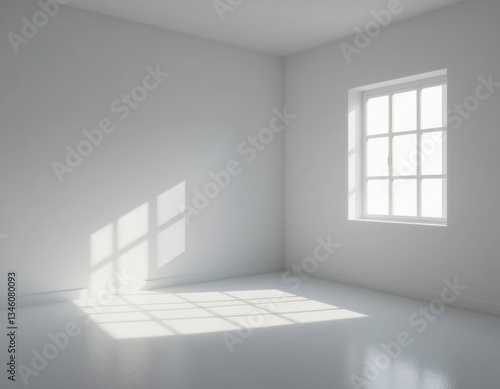 Light Streaming Through Window Illuminating Empty White Room with Minimalist Style