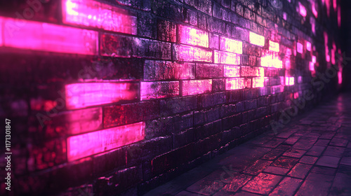 Lighting Effect red and blue on brick wall for background party happiness concept , For showing products or placing products