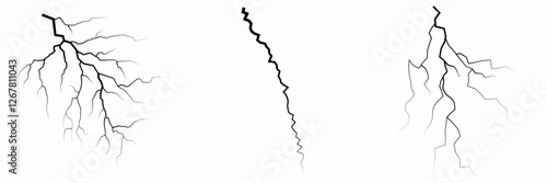 Lightning. Thunder storm realistic lightning. Bright light effects. Lightning bolt set Magic and bright light effects. Set of thunder and lightnings. Lightning energy discharge effect isolated.