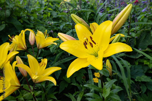 lily yellow, bloomed in a flower bed