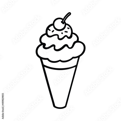 Line art ice cream cone with cherry topping sweet dessert illustration vector design
