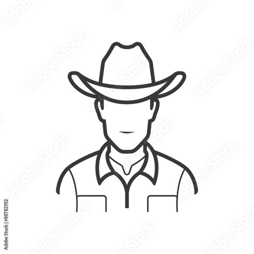 Line Art Icon: Faceless Cowboy in Western Hat and Shirt