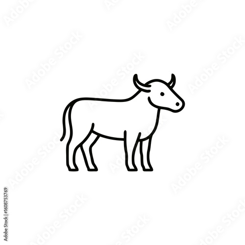 Line Art Illustration of a Standing Cow Farm Animal Minimalism and Simplicity Black and White Design Easy to Use Graphics