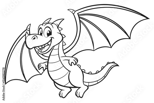 Line art of a playful dragon, suitable for a coloring page, simple lines, no shading, clear outlines, black and white