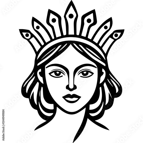 Line Art Portrait of a Woman with Ornate Crown