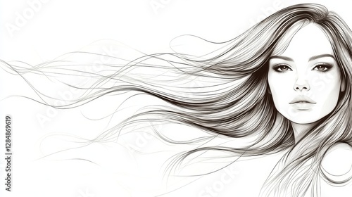 Line Art Woman: A refined and elegant line drawing of a woman's face, featuring flowing hair, depicting a serene and contemplative moment. The minimalist approach conveys a sense of tranquility