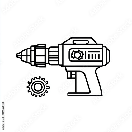 Line Drawing Of A Cordless Drill And Gear