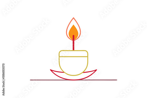 Line Drawing of Candle in Krathong Traditional Thai Festival Illustration