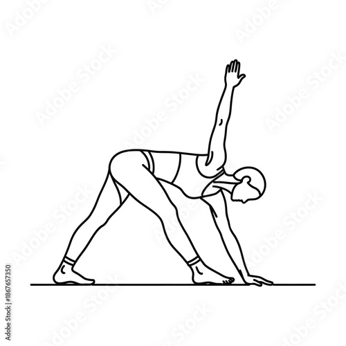 Line of a woman in a yoga pose on a white background exercise fitness de