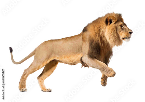 Lion png, transparent background, isolated lion, leaping, angry, full body, generative ai
