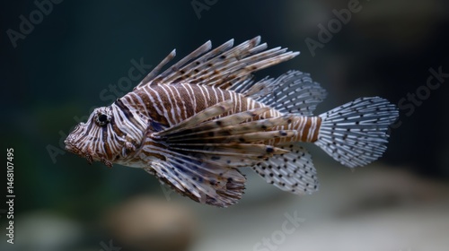 Lionfish Floating Gracefully Underwater Exotic Marine Life Beauty Striking Stripes and Spotted Fins
