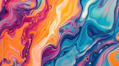 Liquid Colors: A mesmerizing close-up of a colorful abstract, swirling and blending vivid shades creating a dynamic, fluid composition.