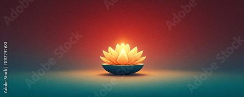Lit diya traditional oil lamp on abstract dark background. Deepavali, Diwali. Hindu festival of lights. Loy Krathong. Template with copy space for greeting card, banner, poster for Indian holidays