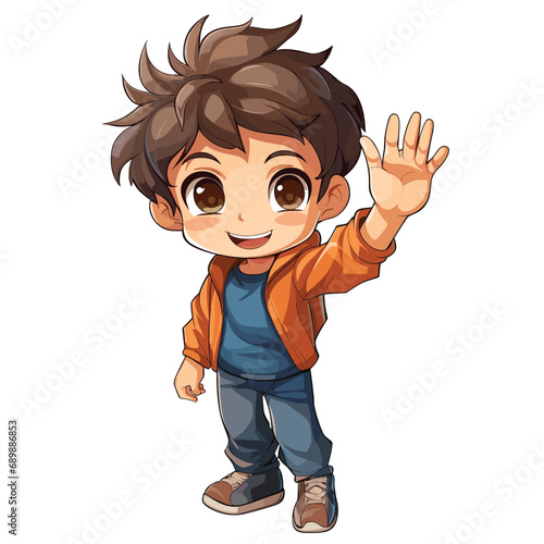 Little cartoon boy waving hand illustration