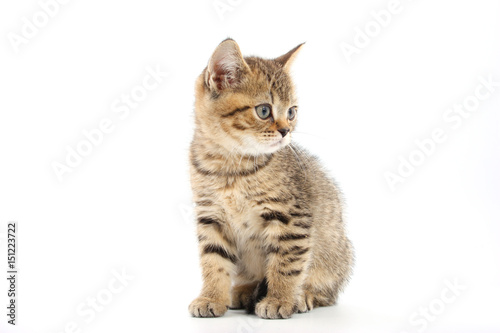 Little cute kitten striped on a white background