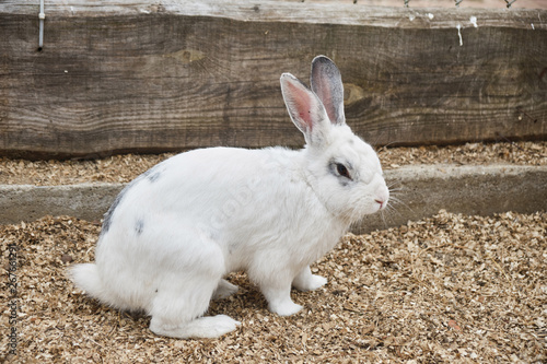 Little cute white rabbit on a farm