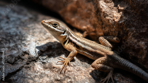 Lizard Sunbathing on a Warm Rock in Natural Outdoor Setting