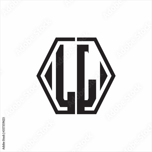 LL Logo monogram with hexagon line rounded design template on white background
