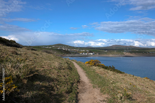 LLyn Peninsula coastal path in Wales. With the village of Aberdaron in the background