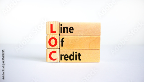 LOC, Line of credit symbol. Wooden blocks with words 'LOC, line of credit'. Beautiful white background, copy space. Business and LOC, line of credit concept.