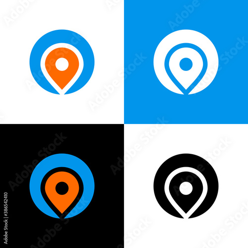 Location or position pointer logo, map pin symbol, circle shape icon