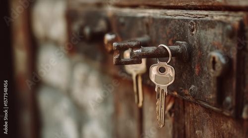 Locked Door with Keys Jammed in Lock – Focused Close-Up Shot