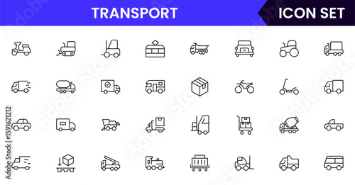 Logistics vector web line icon collection, sleek illustrations of trucks, packages, warehouses, delivery for efficient, streamlined supply chain designs.