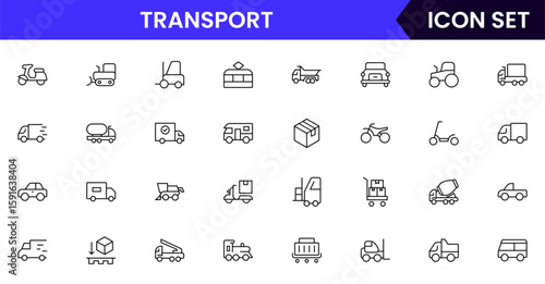 Logistics vector web line icon collection, sleek illustrations of trucks, packages, warehouses, delivery for efficient, streamlined supply chain designs.