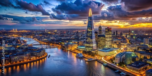 London Shard Night Aerial View Thames River England UK - Dramatic Low Light Photography